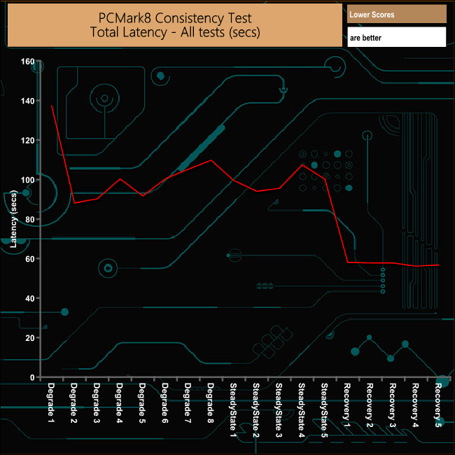 Futuremark’s PCMark 8 is a very good all-round system benchmark but it’s Storage Consistency Test takes it to a whole new level when testing SSD drives. It runs through four phases; Preconditioning, Degradation, Steady State, Recovery and finally Clean Up. During the Degradation, Steady State and Recovery phases it runs performance tests using the 10 software programs that form the backbone of PCMark 8; Adobe After Effects, Illustrator, InDesign, Photoshop Heavy and Photoshop Light, Microsoft Excel, PowerPoint, Word, Battlefield 3 and World of Warcraft. With some 18 phases of testing, this test can take many hours to run.