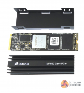 The heatsink on the MP600 has been well designed so it can be easily detached so that the drive can make use of a motherboard's own M.2 cooling system if it has one fitted or if space is at a premium. To remove the heatsink is just a matter of releasing the four clips that hold the heatsink to the backing cradle.
