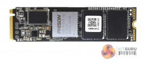 The 1TB MP600 is built on a double-sided M.2 2280 format. One side holds the Phison PS5016-E16 controller, a SKhynix DDR4 DRAM cache IC and two Toshiba 96-layer BiCS4 3D TLC NAND packages. The other side of the PCB holds another pair of NAND packages and a second DRAM chip.