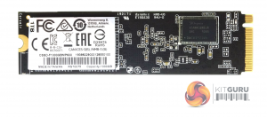 The front of the M.2 2280 PCB is covered by the hefty aluminium heatsink, while the back is covered by the base of the cradle part of the heatsink.