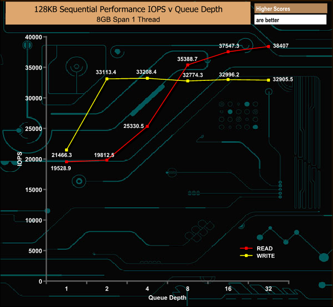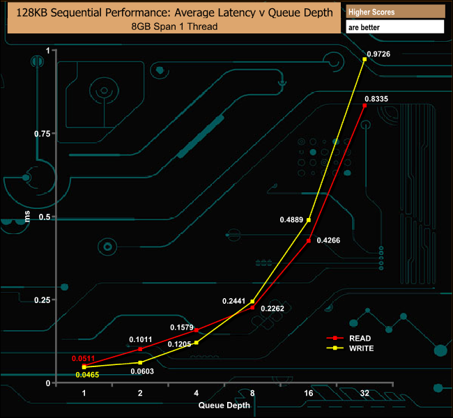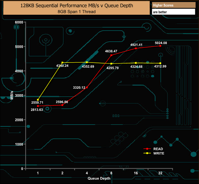 128KB Sequential Write Performance v QD