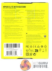 The 2TB MP600 Elite with Heatsink is built on a single-sided M.2 2280 format.