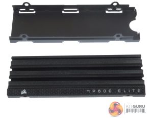 The heatsink version comes with a two-piece cooler comprising a cradle to hold the drive and the deeply grooved aluminium heatsink itself. Four tiny screws join the two parts together. The heatsink adds 2mm to the width, 7mm to the height and 25g to the weight of the standard MP600 Elite.