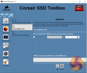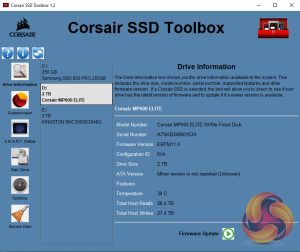 Corsair’s SSD management utility is called SSD Toolbox. It's not the funkiest-looking GUI we've ever seen and could do with a bit of a refresh, but having said that it does provide all you really need to keep an eye on the drive. It provides drive information and S.M.A.R.T details and also supports firmware updates, secure wiping of the drive, drive optimisation and incorporates a disk cloning utility.