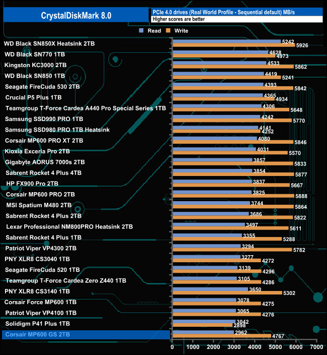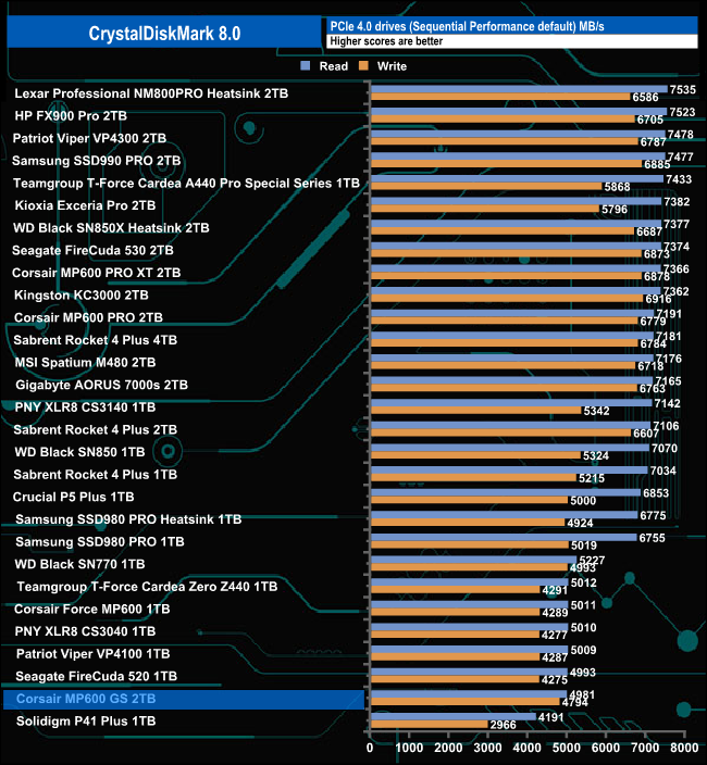 The Corsair MP600 GS random read figure sees the drive in the bottom half of the table.