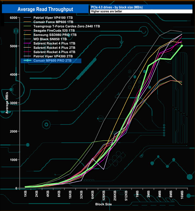 In our read throughput test the drive peaks at 5,00.38MB/s at the end of the test, that read figure is well short of the official maximum of up to 7,000MB/s.