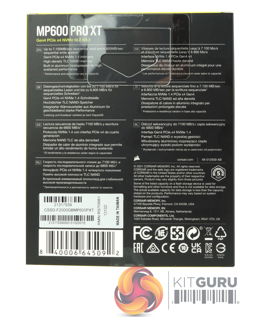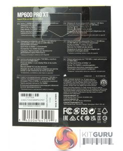 The drive comes in a fairly compact box with a clear image of the drive on the front. Under the image is a strip label with performance figures for Sequential and 4K performance as well as the drive’s capacity. The rear of the box has multilingual information about the drive’s performance and a very short list of some of its features.