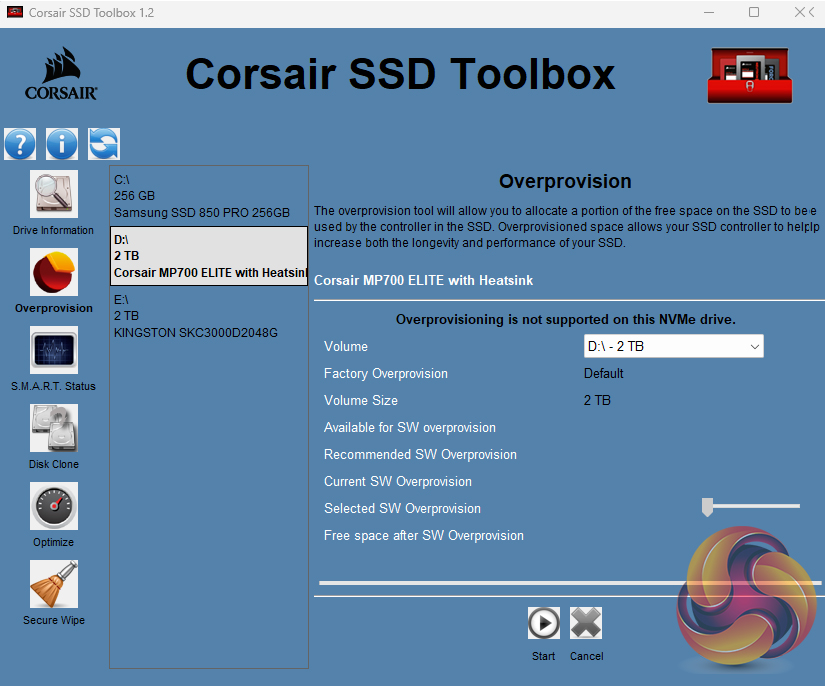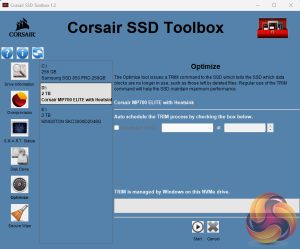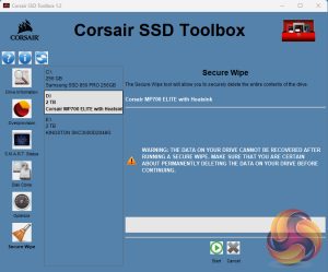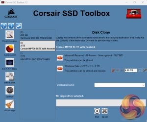 Corsair’s SSD management utility is called SSD Toolbox. It's not the funkiest-looking GUI we've ever seen but having said that, it does give all you really need to keep an eye on the drive. It provides drive information and S.M.A.R.T details and also supports firmware updates, secure wiping of the drive, drive optimisation and usefully incorporates a disk cloning utility.