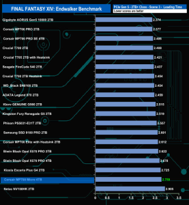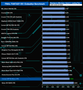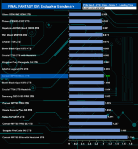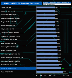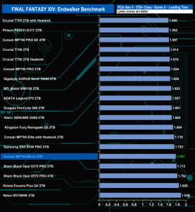 Overall, the 4TB Corsair MP700 Micro sits third from bottom in the results chart. It performs best in Load Scene 1, where it just sits outside the top ten.