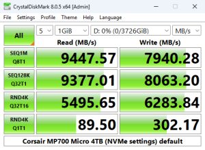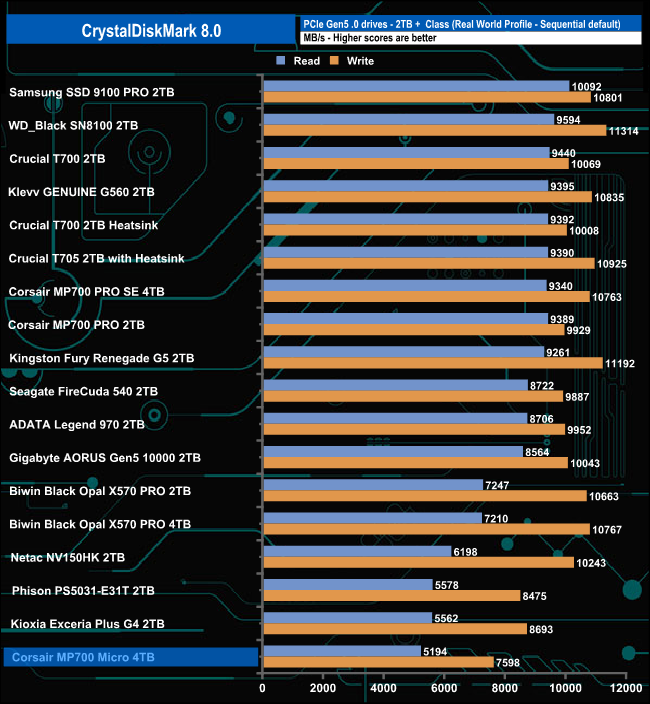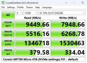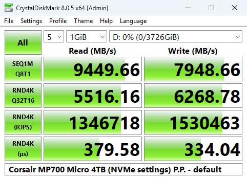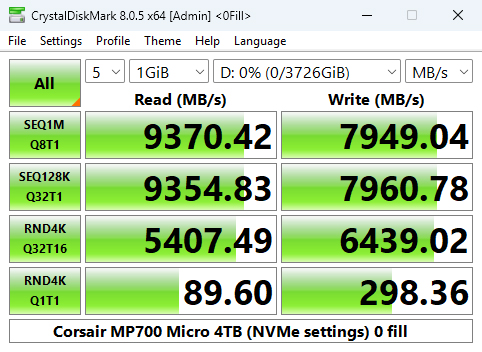 That 9,447MB/s read result sees the MP700 Micro propping up the results chart.