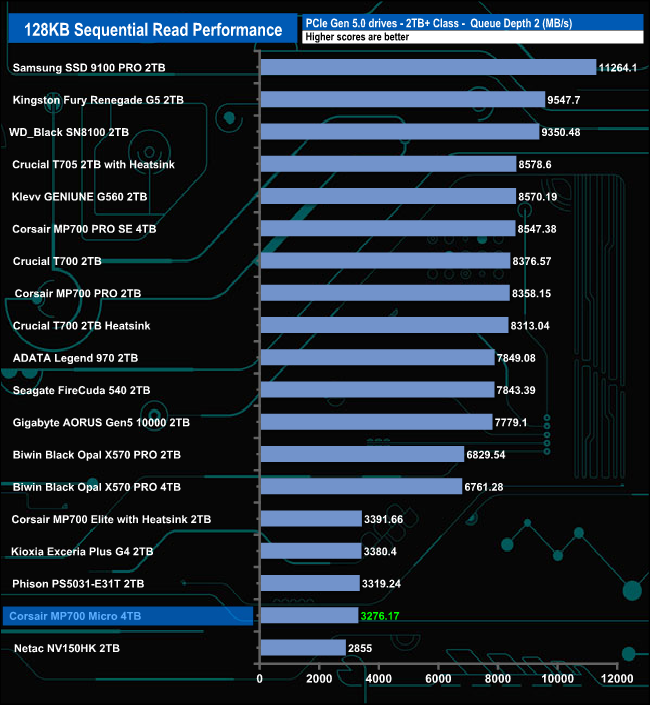 Compared to the drives around it, the MP700 Micro performs best at QDs 2 and 4.
