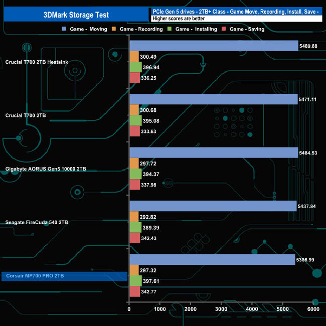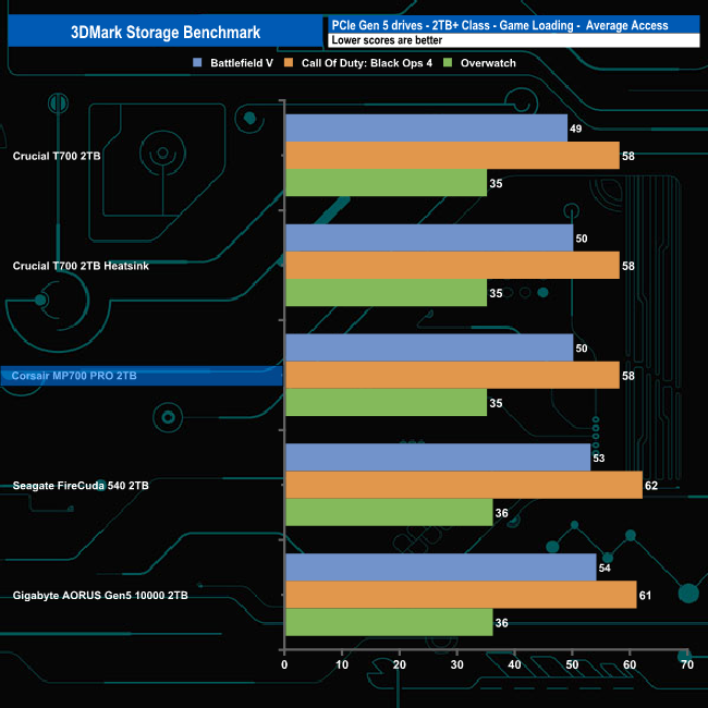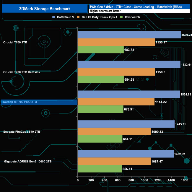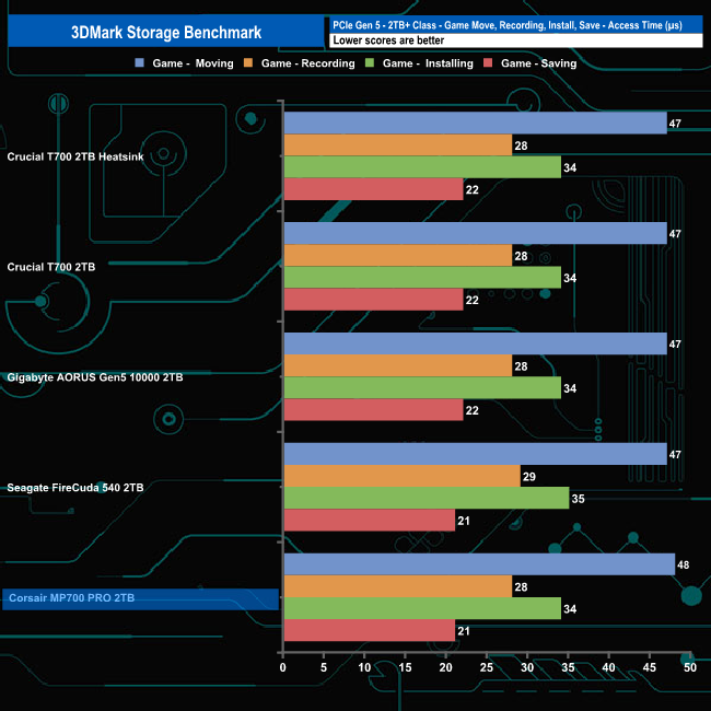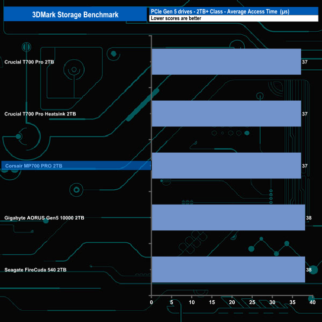 In 3DMark’s Storage Test, the 2TB Corsair MP700 PRO had an average game loading bandwidth figure for the three games of 1,116MB/s with an average access time of 47.6µs.