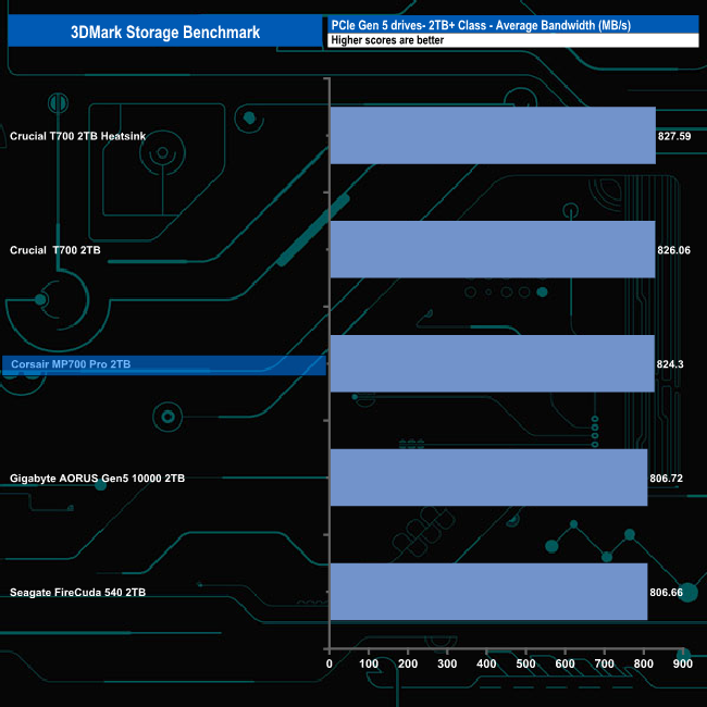 The 2TB MP700 PRO averaged 824.3MB/s for the benchmark run.