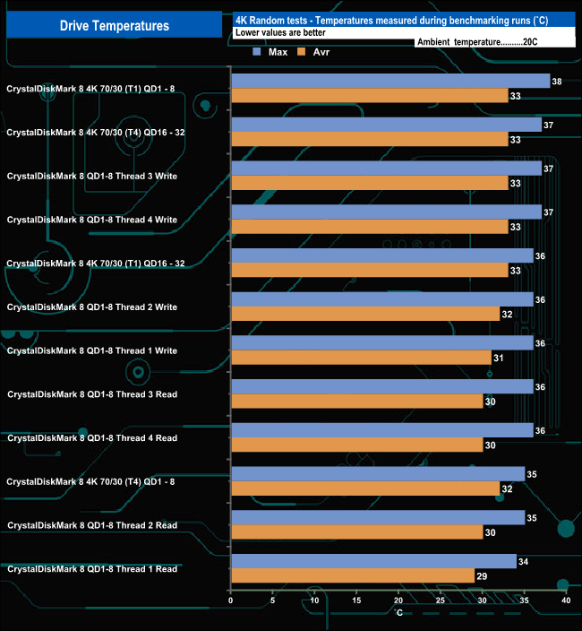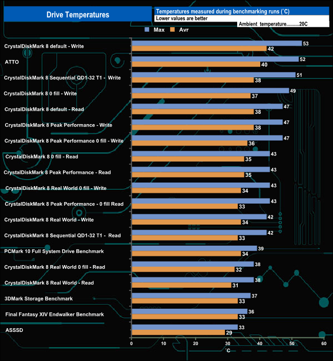 We took note of the drive’s temperature during some of our benchmarking runs.