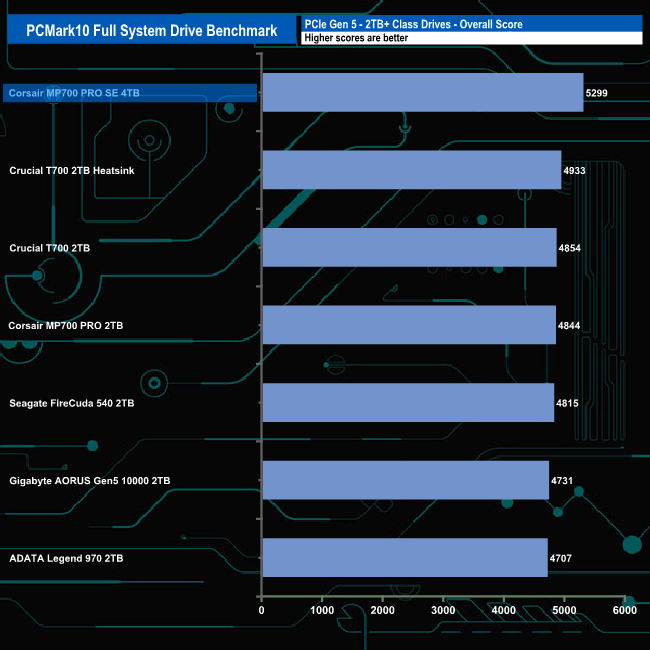 The PCMark 10 Full System Drive Benchmark uses a wide-ranging set of real-world traces from popular applications and common tasks to fully test the performance of the fastest modern drives. The benchmark is designed to measure performance of fast system drives using the SATA bus at the low end and devices connected via PCI Express at the high end.