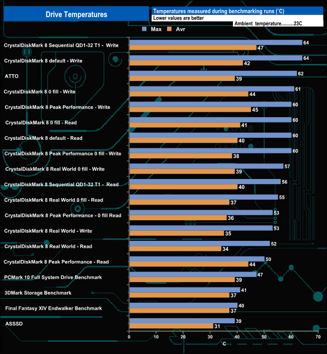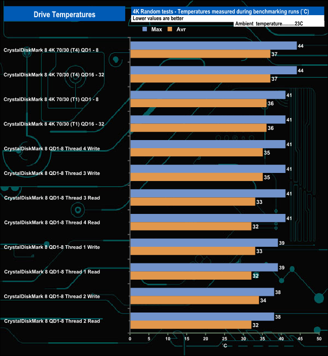 We took note of the drive’s temperature during some of our benchmarking runs.