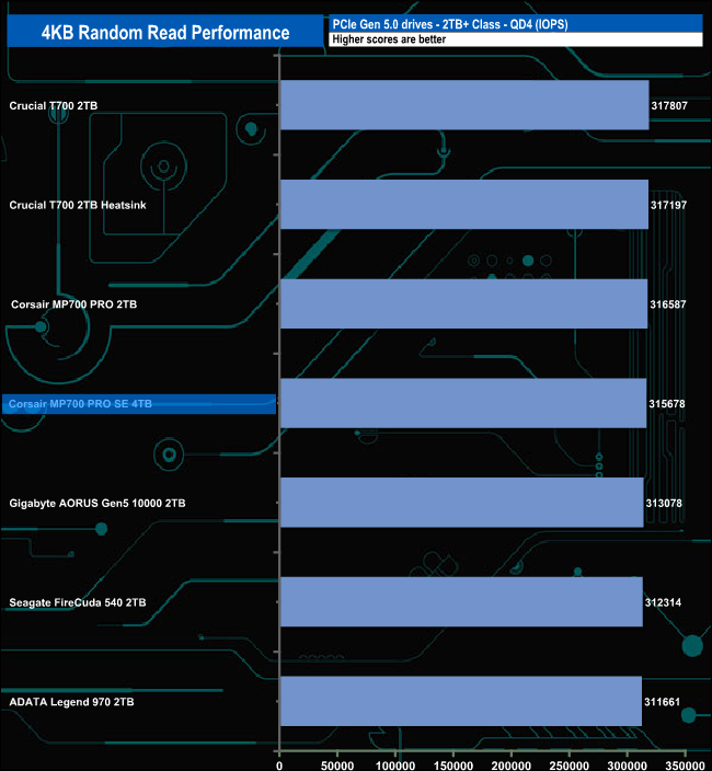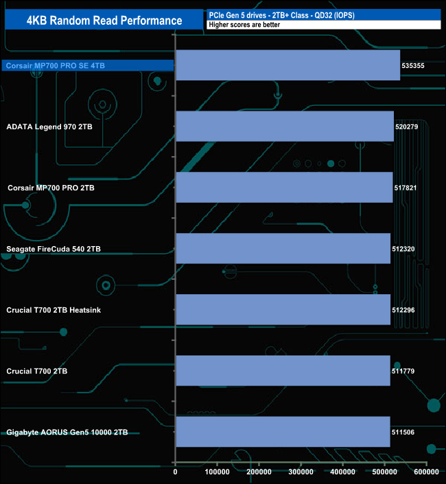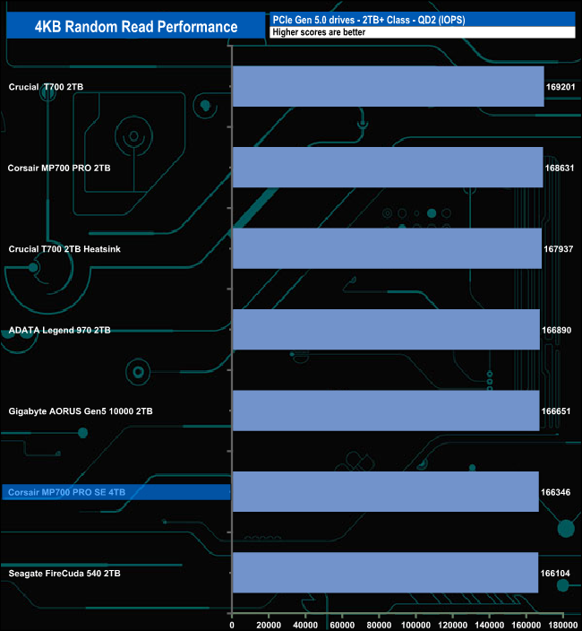 At QD1 the drive sits towards the bottom of the table behind the original MP700 PRO. At QD2 it drops further down the table but at QD4 it stages a recovery and by QD32, the MP700 PRO SE is the fastest consumer Gen 5 drive we've seen to date for this test.