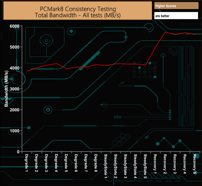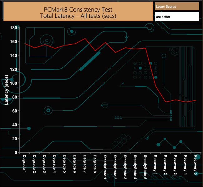 Futuremark’s PCMark 8 is a very good all round system benchmark but it’s Storage Consistency Test takes it to whole new level when testing SSD drives. It runs through four phases; Preconditioning, Degradation, Steady State, Recovery and finally Clean Up. During the Degradation, Steady State and Recovery phases it runs performance tests using the 10 software programs that form the backbone of PCMark 8; Adobe After Effects, Illustrator, InDesign, Photoshop Heavy and Photoshop Light, Microsoft Excel, PowerPoint, Word, Battlefield 3 and World of Warcraft. With some 18 phases of testing, this test can take many hours to run.