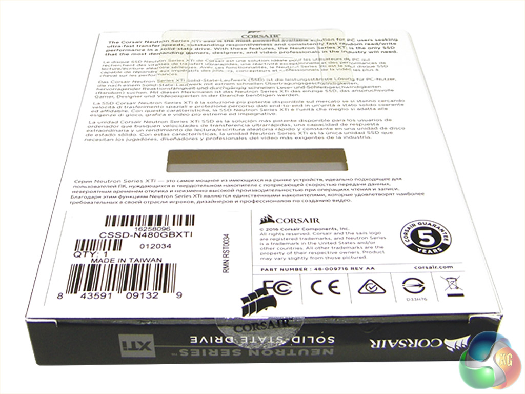 On the rear of the box is just some multi lingual marketing text. The only thing bundled in the box is a 2mm spacer to allow the drive to be fitted securely into larger notebooks.