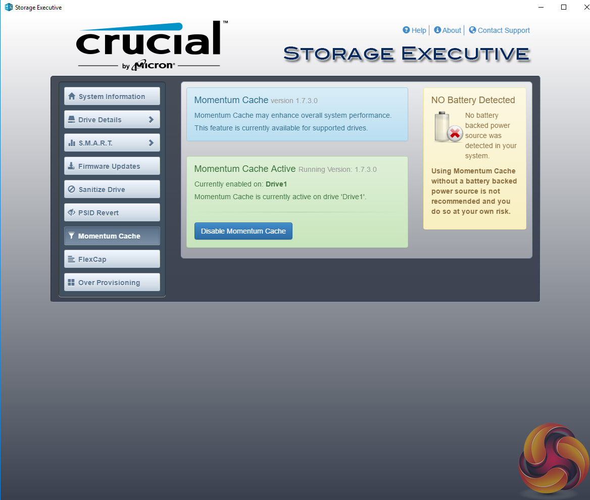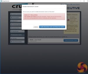 Crucial’s Momentum Cache technology is an intelligent software driver that dynamically leverages unused system memory to enhance burst performance and to overcome the fact that SSDs typically have better read performance that write. Momentum Cache will use up to 25% of available system memory, though no more than 4GB.