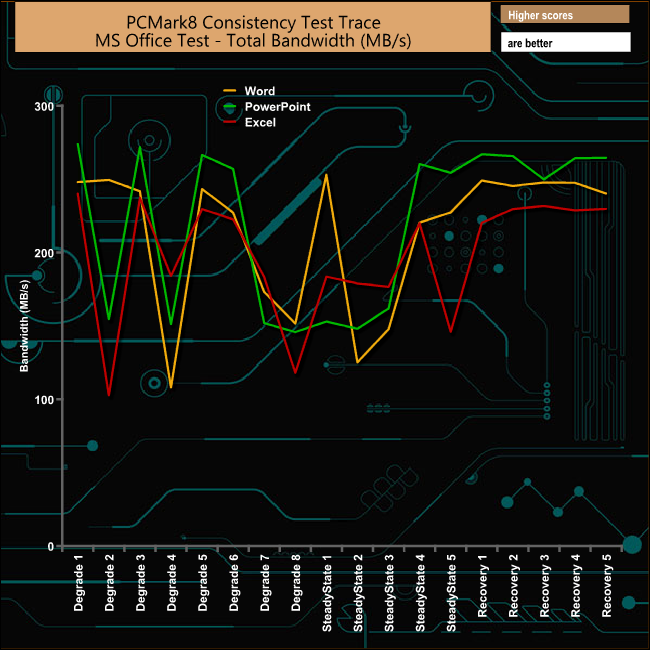 The BX300 doesn't particularly deal well with any of the Microsoft Office tests but once again the recovery cycle sees the drive picking up pretty well.