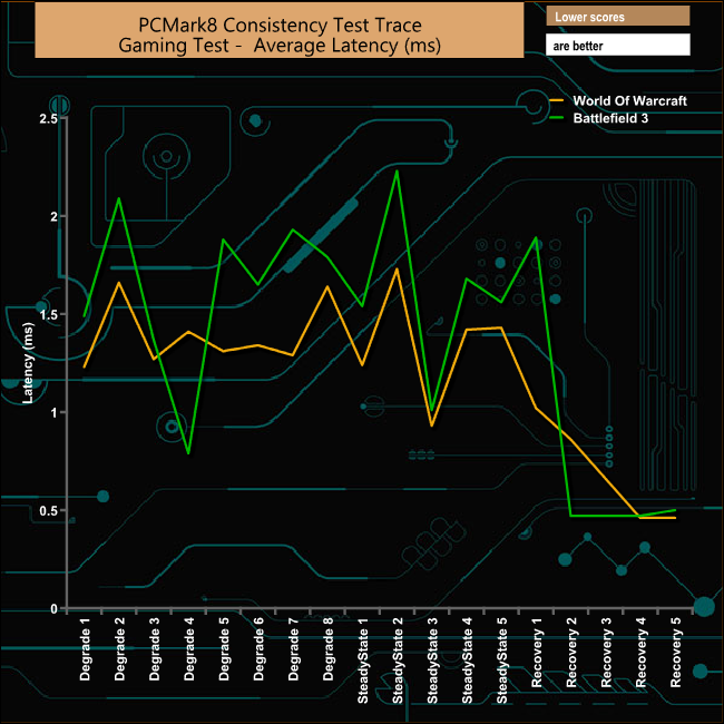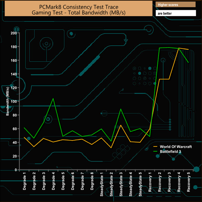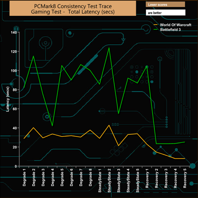 Although the drive gets hit quite hard during both casual gaming tests it does recover very well indeed. The best performance in the recovery phases comes from the Battlefied 3 trace.