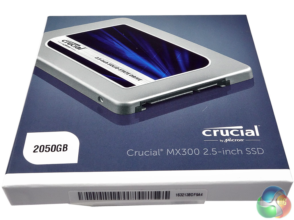 The MX300 2TB comes in the familiar Crucial clamshell box with a large image of the drive on the front, along with a description of the drive and its capacity. The rear of the box has a list of the contents and a link address to Crucial's SSD resources page.