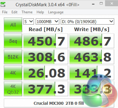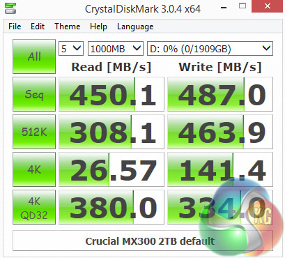 Crystalmark is a useful benchmark to measure theoretical performance levels of hard drives and SSD’s. We are using V3.0.3.