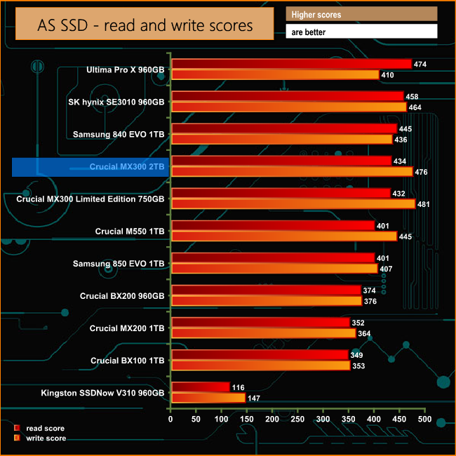 AS SSD includes a sub suite of benchmarks with various file pattern algorithms but this is difficult in trying to judge accurate performance figures.