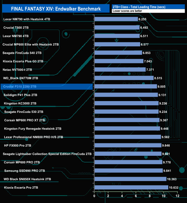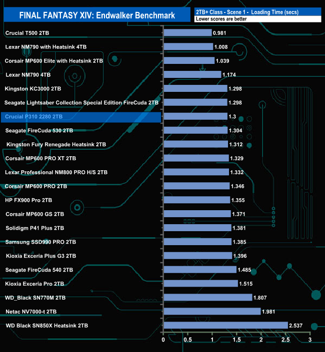 The drive handles the Final Fantasy XIV Endwalker Official Benchmark quite well. It may not top any of the result charts but it still sits in a mid-table position.