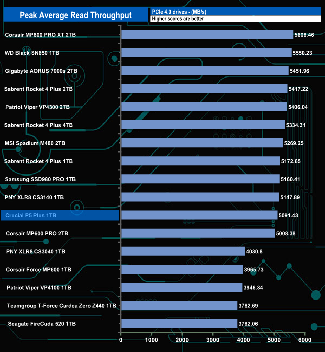 That read throughput figure of 5,091.43MB/s sees the drive sit towards the bottom of the results chart.