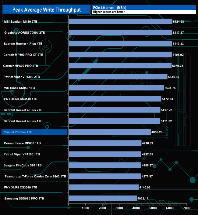 As with the read throughput test, the tested write result sees the drive towards the bottom half of the results chart.