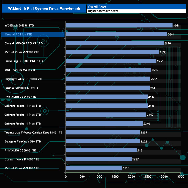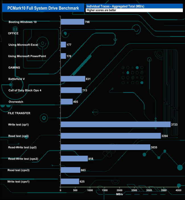 The PCMark 10 Full System Drive Benchmark uses a wide-ranging set of real-world traces from popular applications and common tasks to fully test the performance of the fastest modern drives. The benchmark is designed to measure the performance of fast system drives using the SATA bus at the low end and devices connected via PCI Express at the high end.