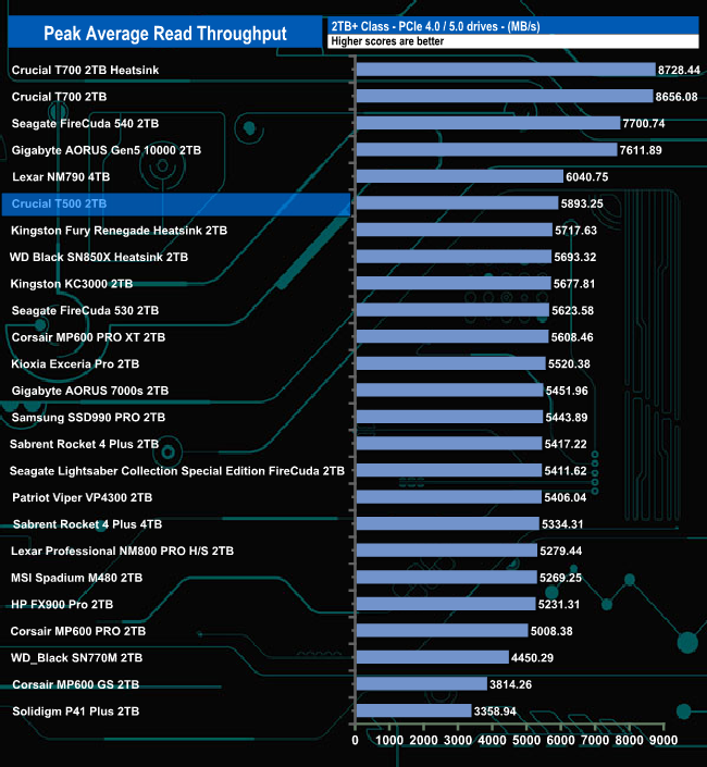 The peak read figure of 5,893.25MB/s sees it sitting in sixth place in the results chart, making it the second fastest Gen4 drive in this test after Lexar's NM790.