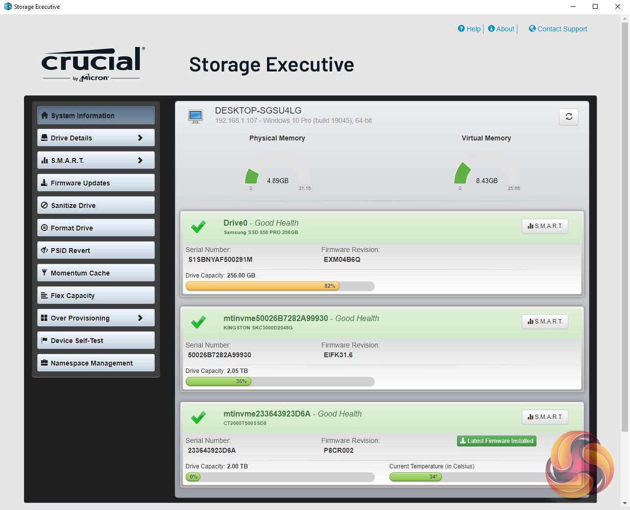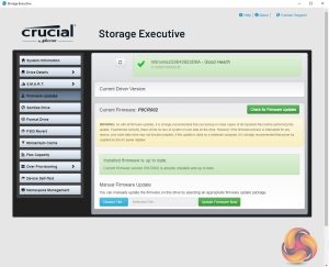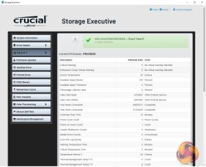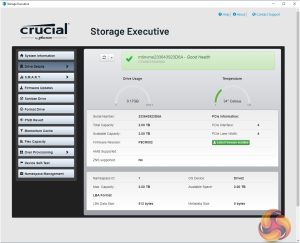 Crucial’s Storage Executive is a pretty comprehensive SSD toolkit. With it, you can check the drive’s S.M.A.R.T data, update the firmware, see how the drive’s capacity is being used, monitor the drive’s operating temperature and overall health as well as adjust the Over Provisioning. There are a few more options as well that aren't supported by this particular drive.