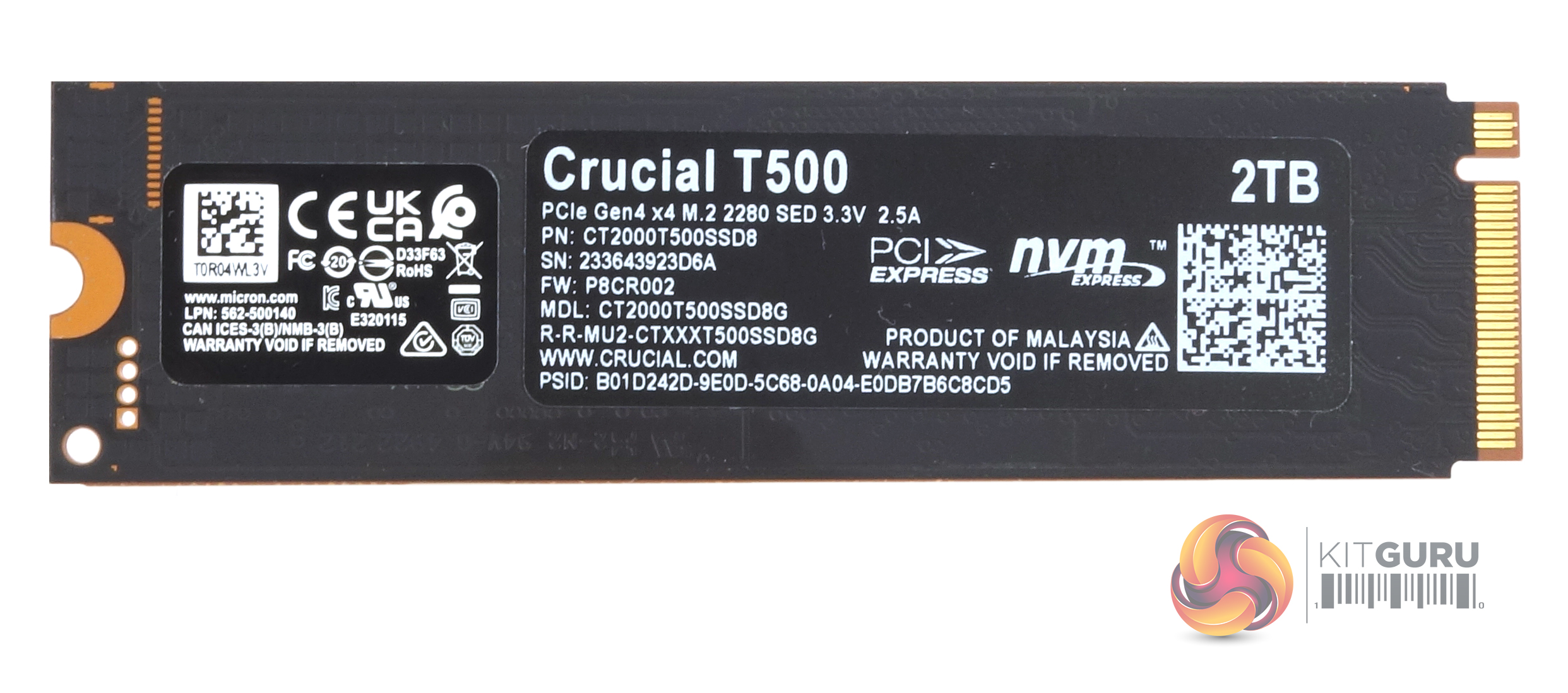 Crucial's 2TB T500 is built on a single-sided M.2 2280 format.