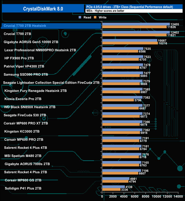 Those Sequential scores are the fastest we've seen to date for a consumer NVMe SSD and they give a hint of what's to come from Gen 5 drives in the coming months as the full data transfer speeds are unlocked.