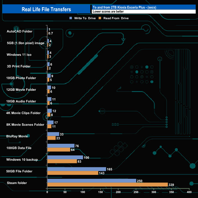 To test the real-life performance of a drive we use a mix of folder/file types and by using the FastCopy utility (which gives a time as well as MB/s result) we record the performance of drive reading from & writing to a 2TB Seagate FireCuda 510.