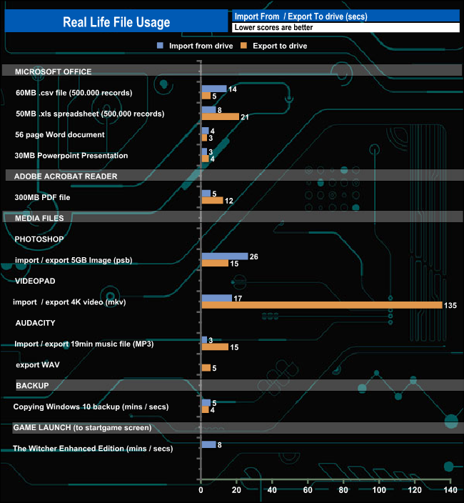 We also timed moving a Win 10 backup file to and from the drive and launching a game from the X9 Pro.