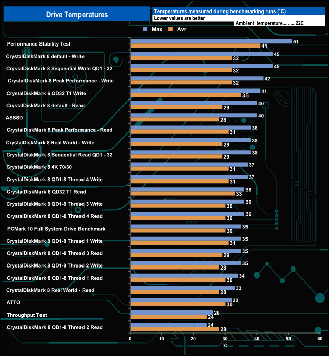 Gigabyte has fitted the Aorus 7000s with a stylish looking and at 7mm high, quite low profile aluminium heatsink. The heatsink has a good number of fins and has a nanocarbon coating to help with heat dissipation. It works well too, as the hottest the drive got during benchmarking was the 51C when running the stability test.