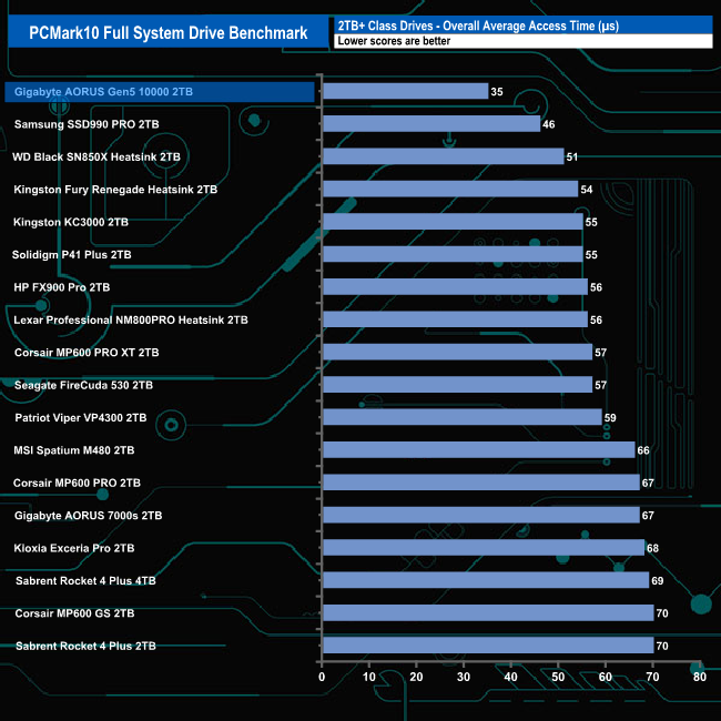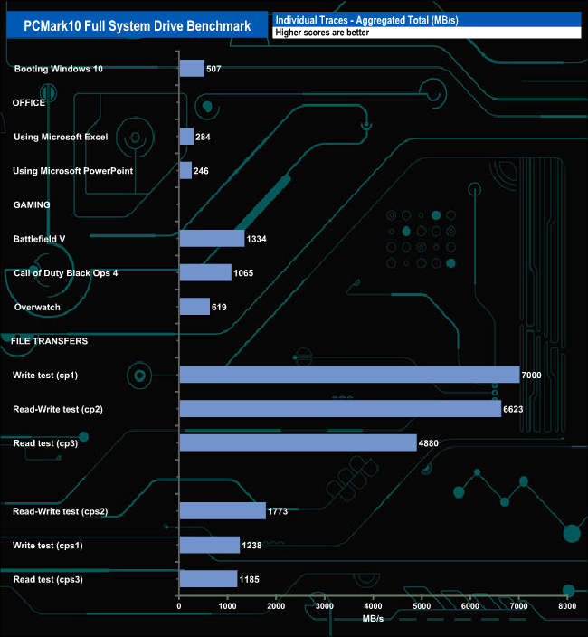 The PCMark 10 Full System Drive Benchmark uses a wide-ranging set of real-world traces from popular applications and common tasks to fully test the performance of the fastest modern drives. The benchmark is designed to measure the performance of fast system drives using the SATA bus at the low end and devices connected via PCI Express at the high end.