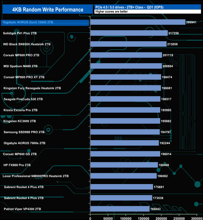 Gigabyte's AORUS Gen5 10000 drive leads the Gen4 drives by a considerable margin in all the tested queue depths.
