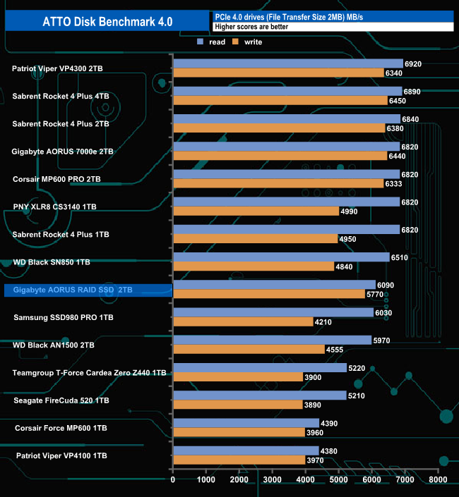 The official Sequential read/write figures for the drive are up to 6,300MB/s and 6,000MB/s respectively. Using the ATTO benchmark we couldn't quite hit the maximums with a tested read figure of 6,090MB/s with writes at 5,770MB/s. However, both of these tested figures are faster than a number of first-generation PCIe Gen 4 drives that we've reviewed.