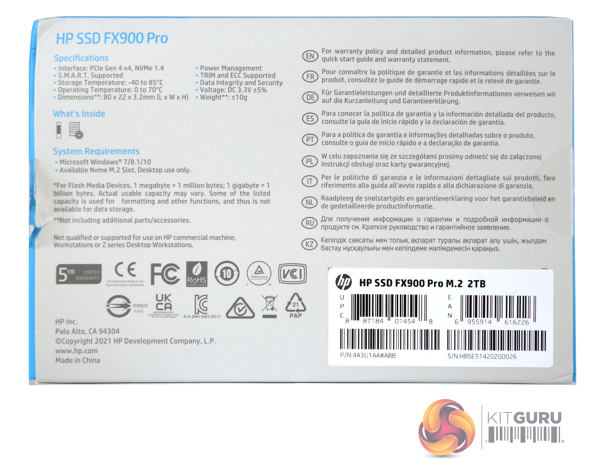 The front of the box carries an image of the back of the drive, (the side with the product label). Under the image is a band that displays the capacity of the drive along with icons for High Performance, Durability and Silence. The rear of the box has a very small list of the drive's features along with the system requirements on one side while the other has a multilingual list for extra warranty information. The one thing that is missing though is any hint of the drive's performance