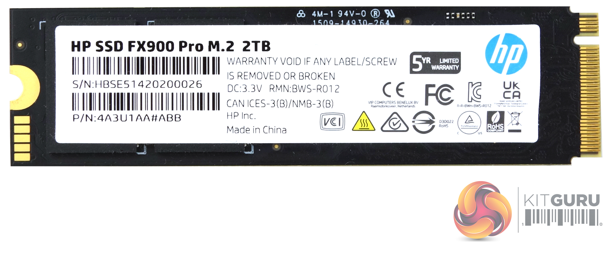 The drive is built for HP by BIWIN Storage, the Chinese OEM manufacturer of high-performance memory and storage solutions. The 2TB FX900 Pro is built on a standard M.2 2280 dual-sided layout format and uses an InnoGrit IG5236 controller together with 176-layer Micron B47R Fortis Grade NAND. One side of the PCB holds the IG5236, two 512GB NAND packages and a DDR4 2666 cache IC while the other side is home to two more NAND packages and a second cache chip.