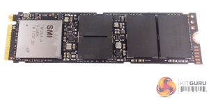 Along with the Silicon Motion SM2262 controller there are two 256Gb 64-layer 3D TLC NAND packages (labelled 29F02T4AOCTH2) and a pair of Micron DDR4-2400 256MB cache chips (labelled 7JB77). The Silicon Motion SM2262 8-channel controller has a PCIe 3 x4 NVMe 1.3 interface and supports end to end data protection, AES and TCG Opal encryption.