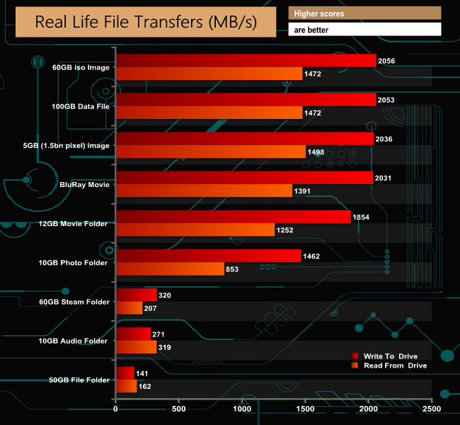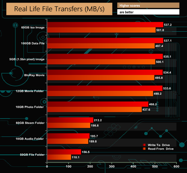 The drive is much happier dealing with the larger file sizes in our real life file transfer tests.
