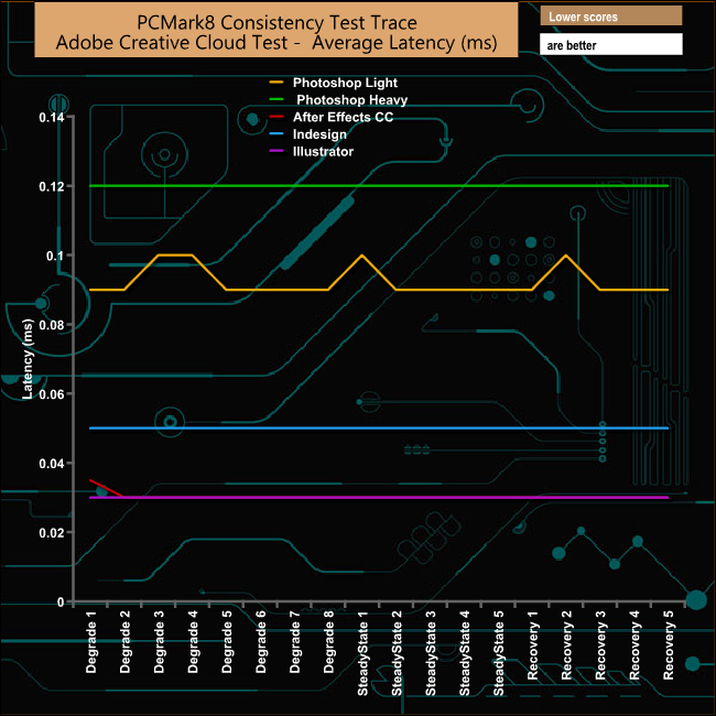 PCMark 8’s Consistency test provides a huge amount of performance data, so here we’ve looked a little closer at how Intel's 480GB Optane SSD905P performs in each of the benchmarks test suites.