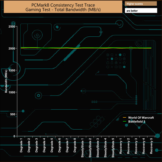 As with the previous two test suites, the Casual Gaming test doesn't seem to cause the drive any problems at all, with an average bandwidth for the whole test run of 2,004.71MB/s for the World Of Warcraft trace and 2,014.38MB/s for the Battlefield 3 one.