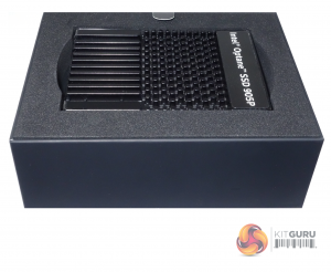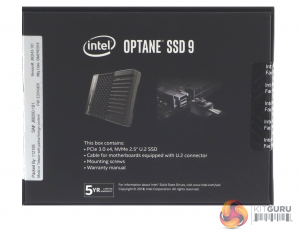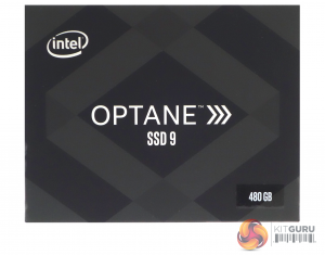 The Intel Optane SSD 905P 480GB ships in a sturdy, stylish box with a label on the front face, showing the capacity. The rear of the box has images of the drive and depicts how the business end of the bundled cable connects to an M.2 adapter (not included).